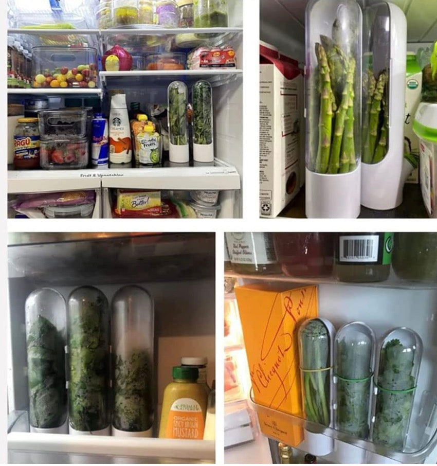 This Fresh Keeper Pod is designed to keep your coriander, mint, spinach, asparagus, parsley and other greens fresh and crisp for up to 2β3 weeks.